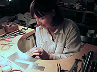 Nach wie vor arbeite ich allein und erzeuge von mir entworfene Schmuck-Unikate in Handarbeit. Hier wird gesägt, gebogen, gehämmert, gefeilt und poliert... |